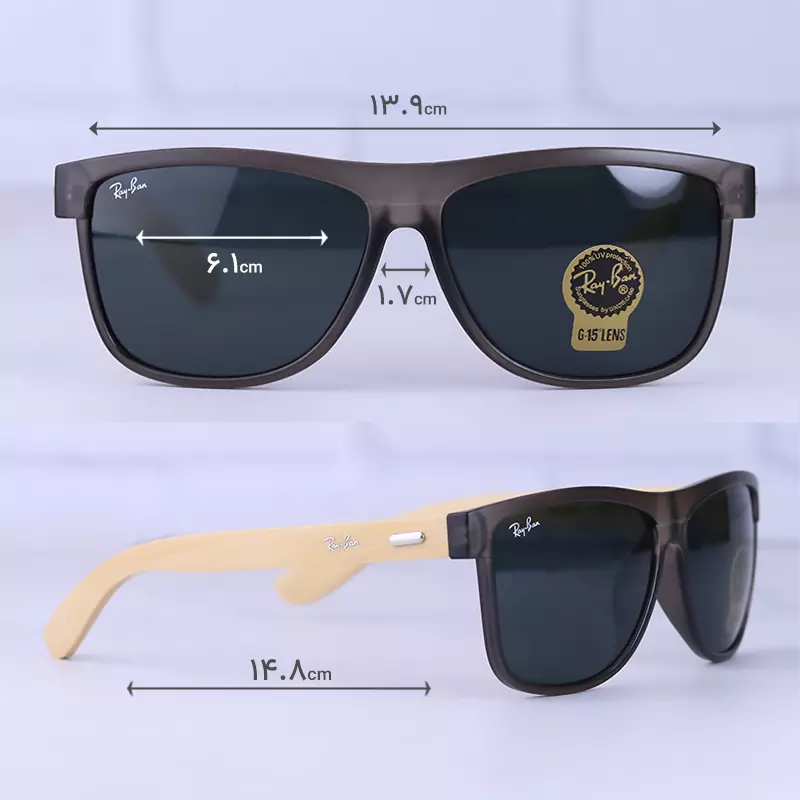 عینک آفتابی ری بن فریم مستطیل دسته چوبی RB 8302/1