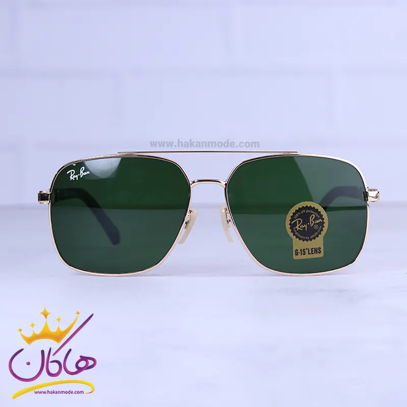 عینک آفتابی ری بن مردانه فلزی طلایی شیشه سبز RB 3026 F /2
