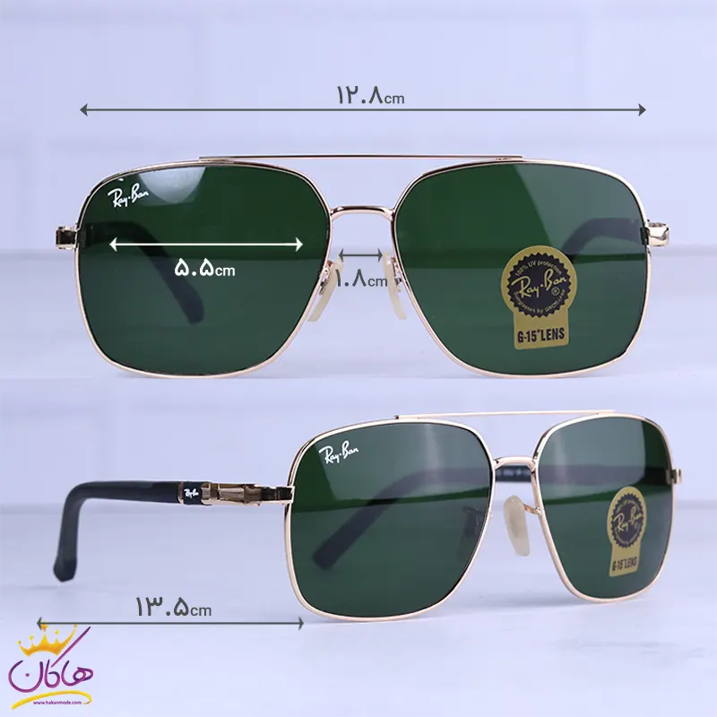 عینک آفتابی ری بن مردانه فلزی طلایی شیشه سبز RB 4854/2