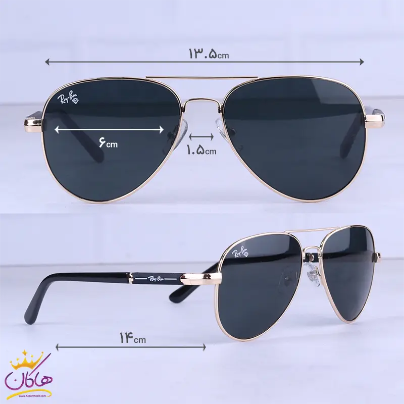 عینک آفتابی ری بن مردانه فلزی طلایی شیشه مشکی RB 3026 F/1