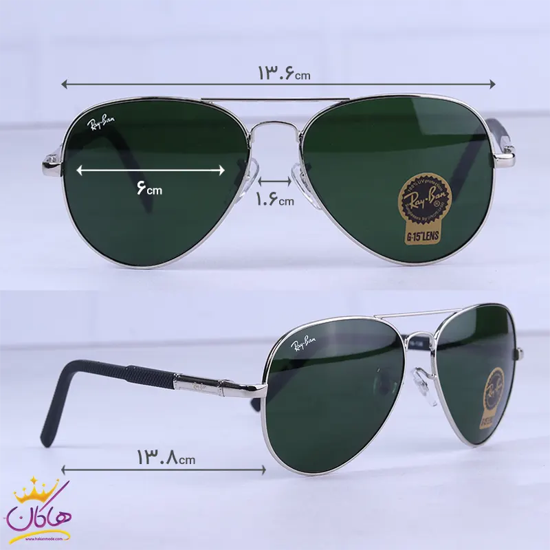 عینک آفتابی ری بن مردانه فلزی عدسی سبز خلبانی RB 3025/5