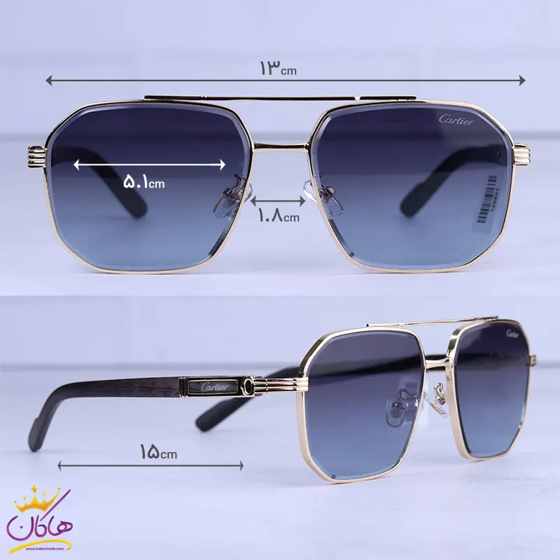 عینک آفتابی مردانه کارتیر فلزی طلایی شیشه مشکی 2A932/1