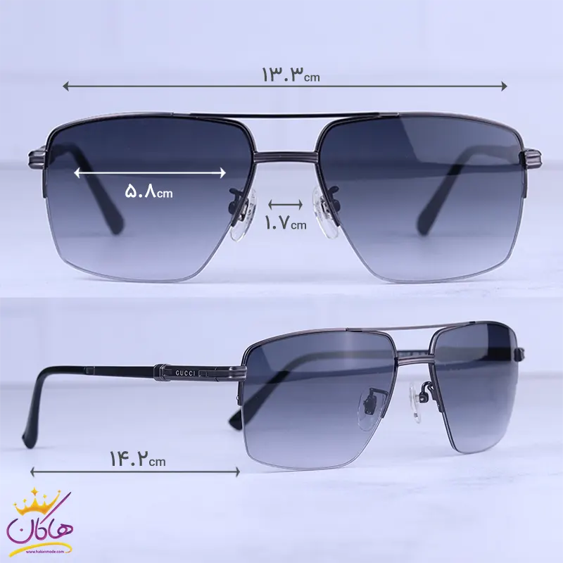 عینک آفتابی مردانه گوچی نیم فریم دودی فلزی GG1351/3