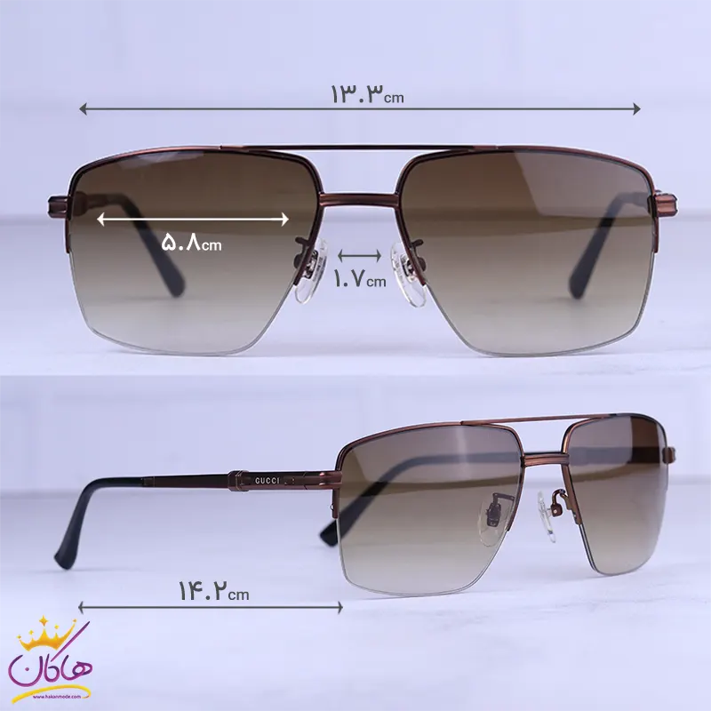 عینک آفتابی مردانه گوچی نیم فریم قهوه ای GG1351/5