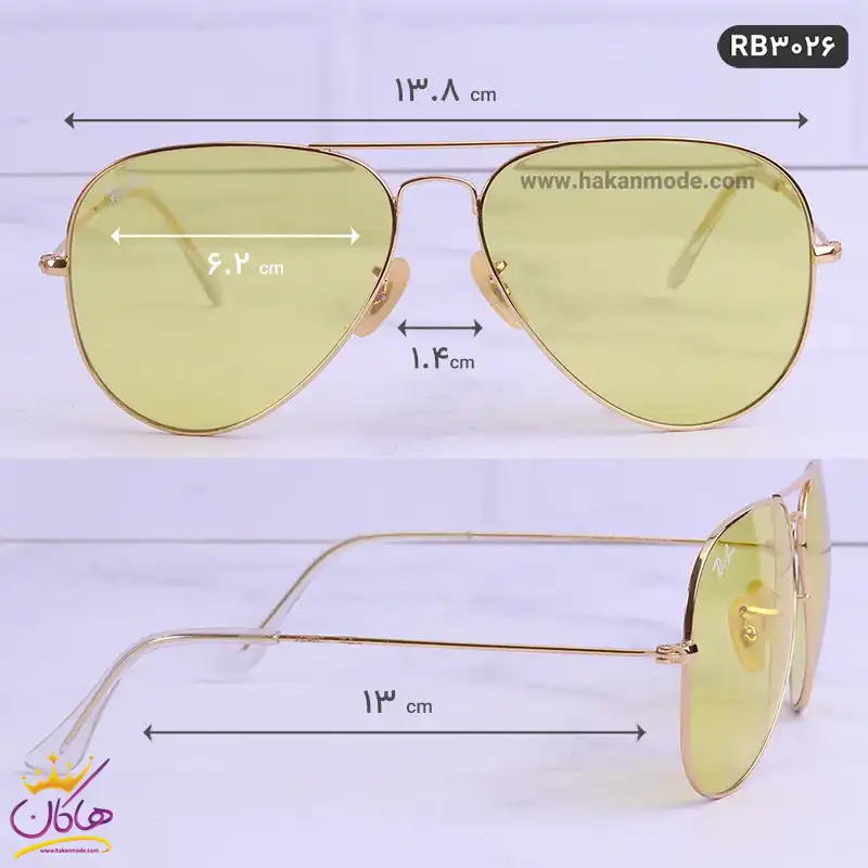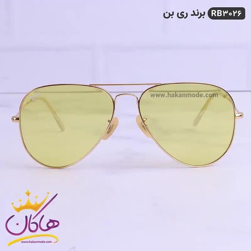 عینک ری بن طلایی زرد اورجینال 3026