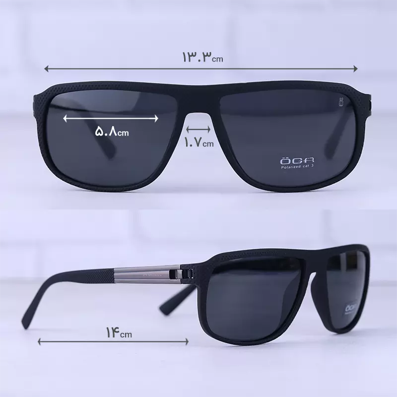عینک آفتابی اوگا فریم مشکی مستطیل پلاریزه 78036/1