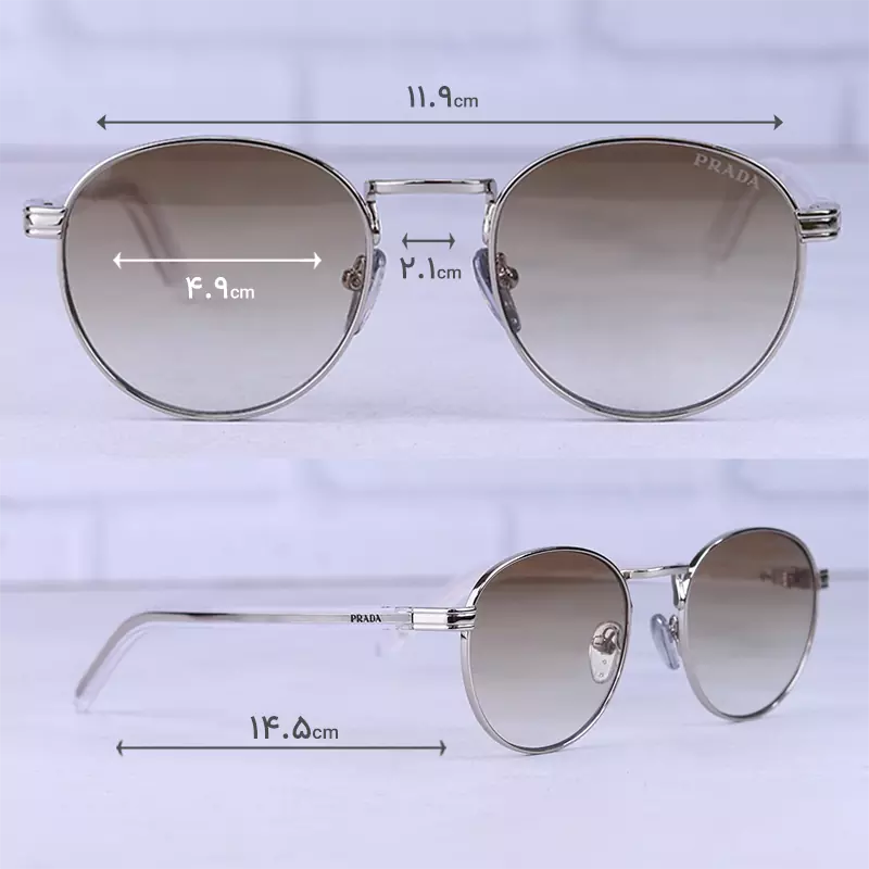 عینک آفتابی پرادا زنانه فریم گرد نقره ای PR B52S/1