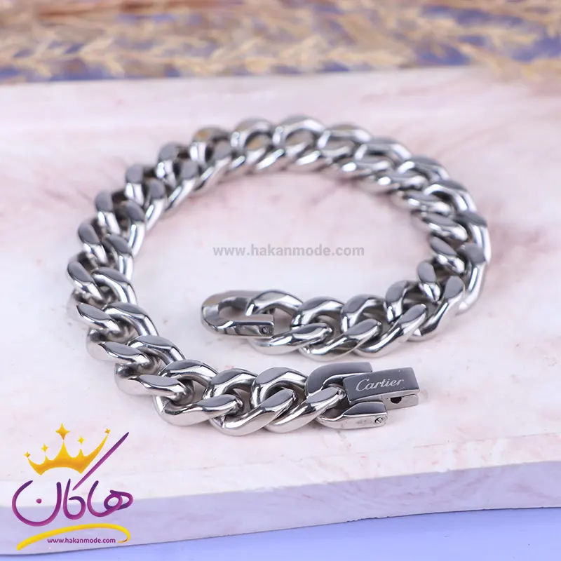خرید دستبند مردانه کارتیر نقره ای SP 54/2 دستبند کارتیر نقرهای استنلس استیل رنگ ثابت و ضد حساسیت است. عرض