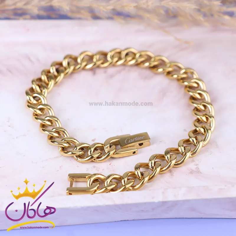 خرید دستبند مردانه فلزی کارتیر طلایی؛ ضدحساسیت و رنگ ثابت دستبند استیل مردانه کارتیر طلایی هم با استایل کلاسیک و