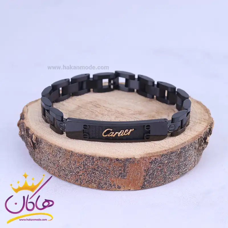 خرید دستبند مردانه فلزی مشکی پلاک کارتیر؛ ضدحساسیت و رنگ ثابت دستبند استیل مردانه کارتیر مشکی هم با استایل کلاسیک