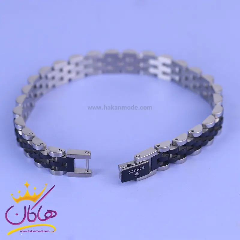 خرید دستبند مردانه رولکس نقره ای مشکی st 41090 دستبند رولکس نقرهای مشکی استنلس استیل رنگ ثابت و ضد حساسیت