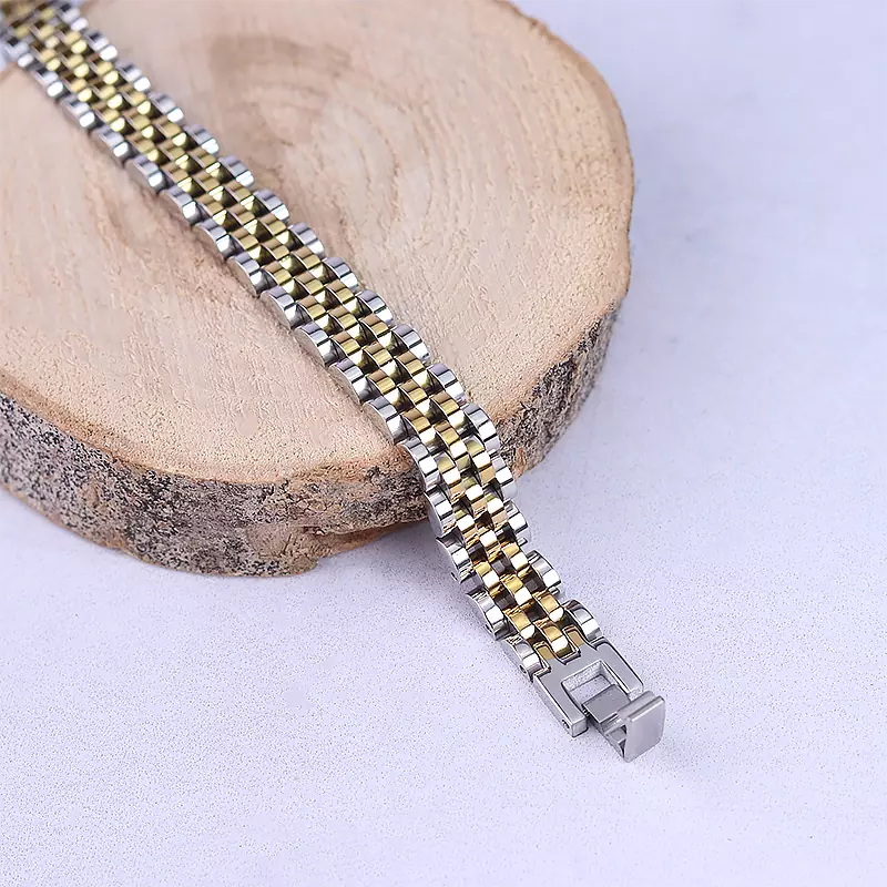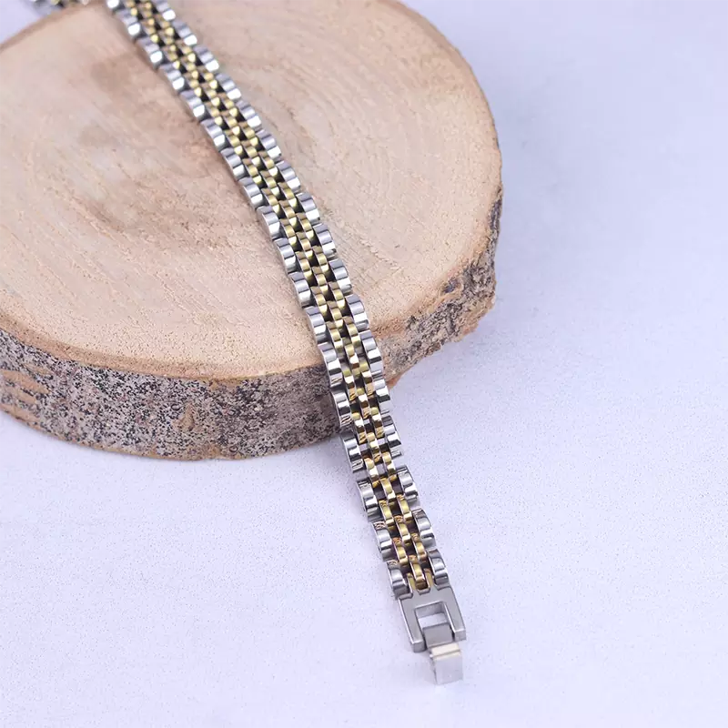 دستبند استیل مردانه رولکس طلایی نقره ای 2029/1