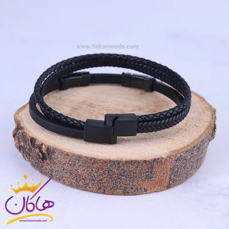 دستبند مردانه بنگل پیچی مشکی st 4347