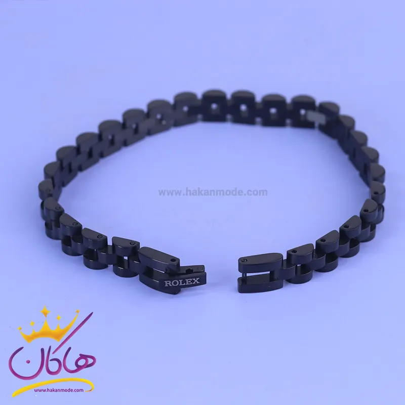 خرید دستبند مردانه رولکس باریک مشکی st 41067 دستبند رولکس مشکی استنلس استیل رنگ ثابت و ضد حساسیت است. عرض