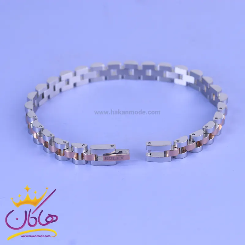 خرید دستبند مردانه رولکس باریک نقره ای رزگلد st 41069 دستبند رولکس نقره ای رزگلد استنلس استیل رنگ ثابت و