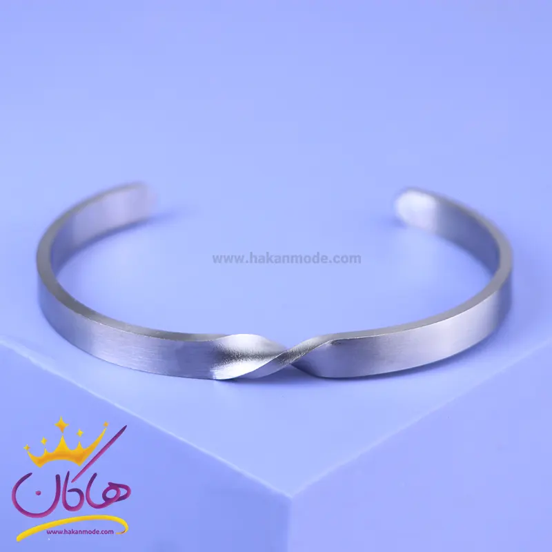خرید دستبند مردانه بنگل پیچی نقره ای دستبند بنگل نقره ای استنلس استیل رنگ ثابت و ضد حساسیت است. عرض