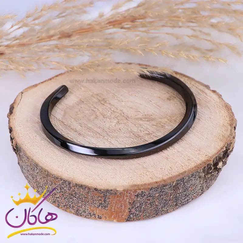 خرید دستبند مردانه بنگل پیچی مشکی دستبند بنگل مشکی استنلس استیل رنگ ثابت و ضد حساسیت است. عرض بند 6.5