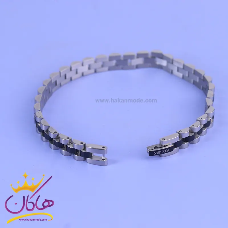 خرید دستبند مردانه رولکس مشکی st 41097 دستبند رولکس مشکی استنلس استیل رنگ ثابت و ضد حساسیت است. عرض بند