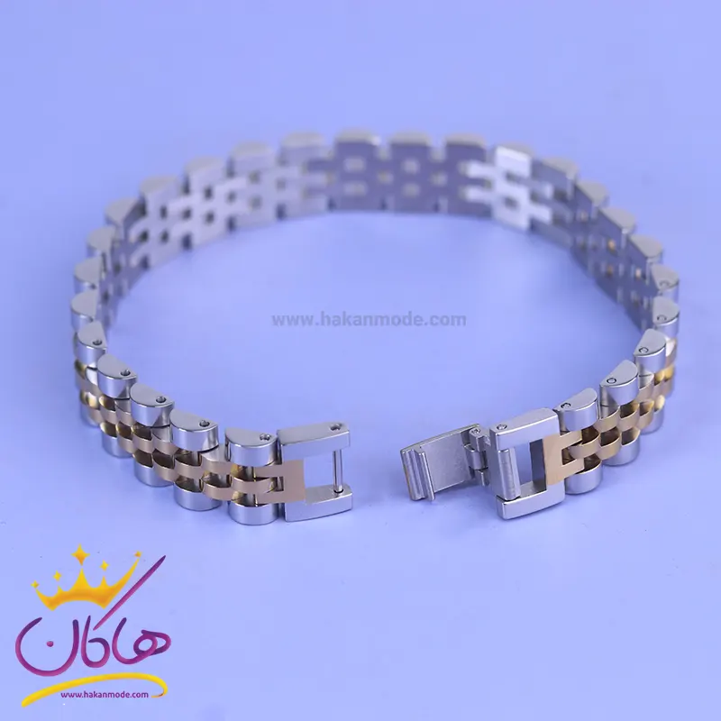 خرید دستبند مردانه رولکس طلایی نقره ای st 41091 دستبند رولکس نقرهای طلایی استنلس استیل رنگ ثابت و ضد حساسیت