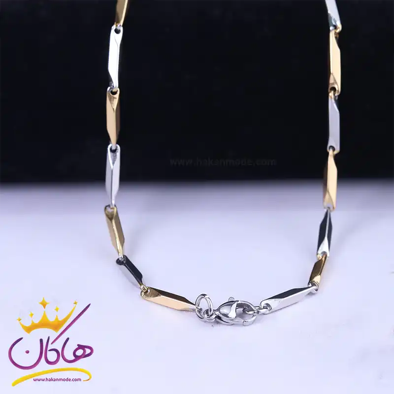 زنجیر استنلس استیل کبریتی نقره ای طلایی مردانه st 19063