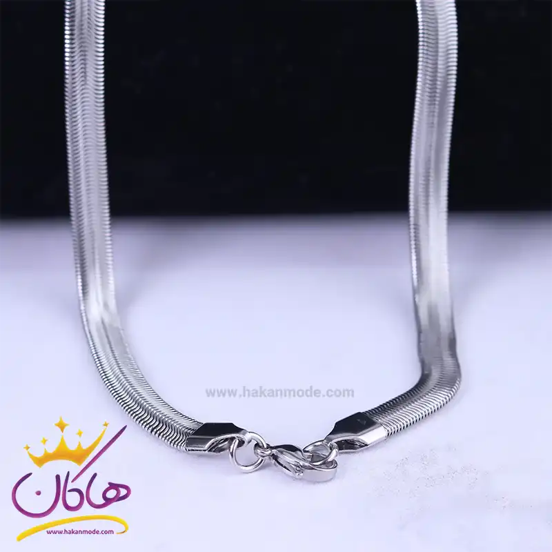 زنجیر استنلس استیل نقره ای مردانه مدل هرینگبون st 19145