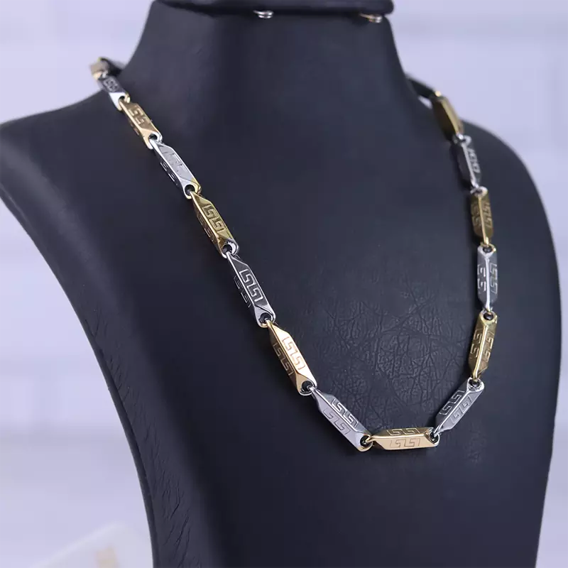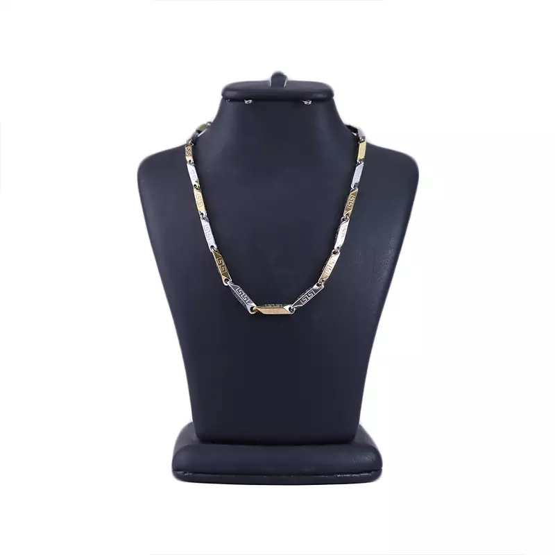 زنجیر استیل مردانه کبریتی نقره ای طلایی طرح ورساچه 4031