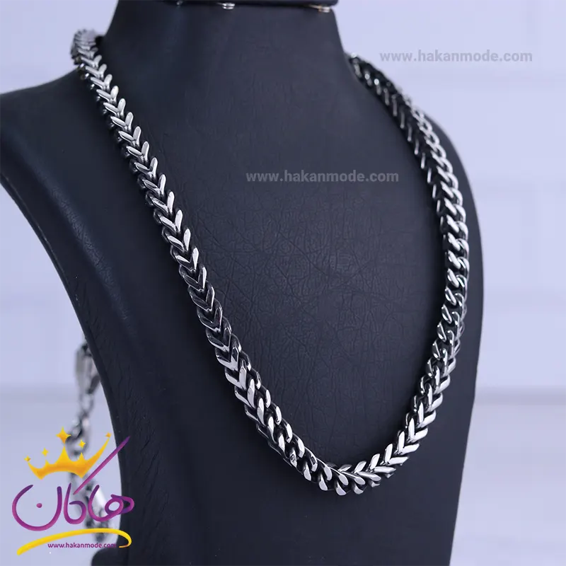 زنجیر هرینگبون نقره ای استنلس استیل st 19143