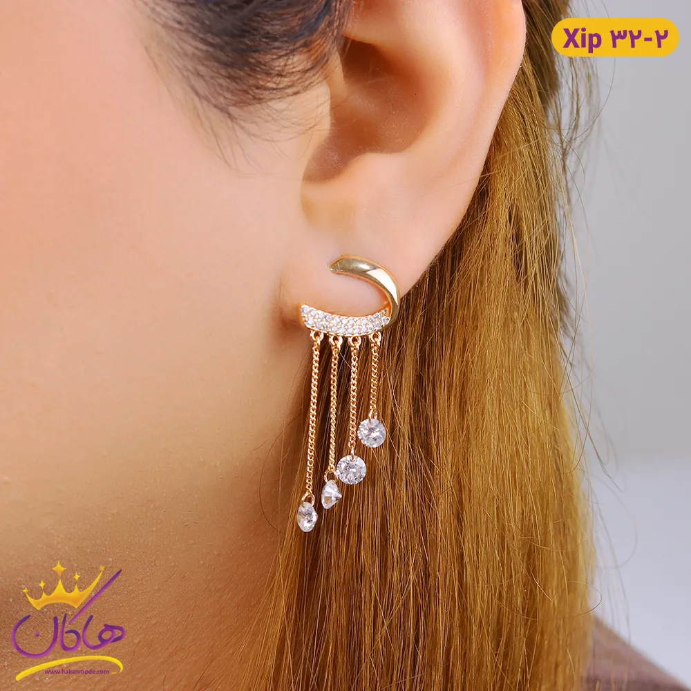گوشواره استیل زنانه میخی اویز الماس | xip 32/2