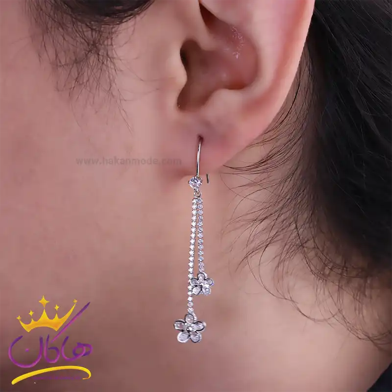 گوشواره استیل ژوپینگ آویز گل نقره ای؛ ضد حساسیت و رنگ ثابت خرید گوشواره استیل زنانه آویز گل ژوپینگ را