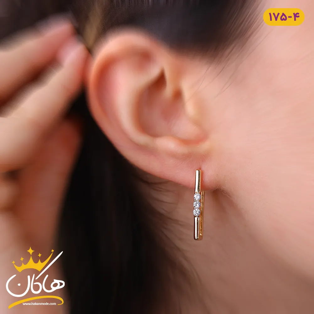 گوشواره چفتی ژوپینگ مستطیل سه نگین | xp 175/4