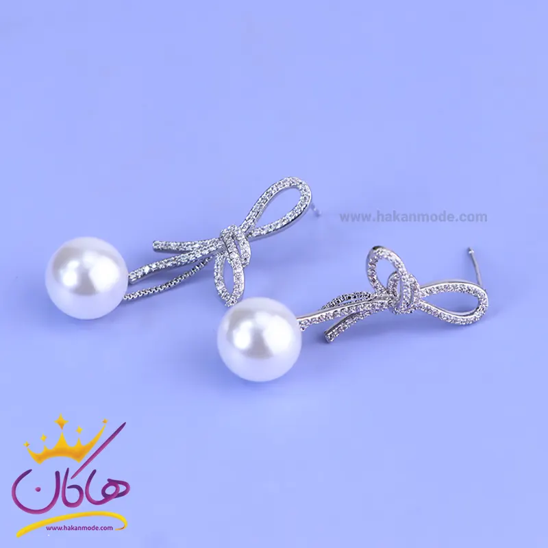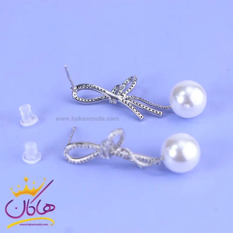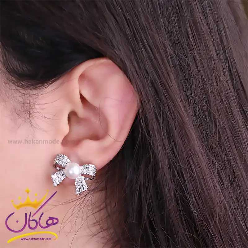 گوشواره زنانه استیل پاپیون و مروارید SP 11306