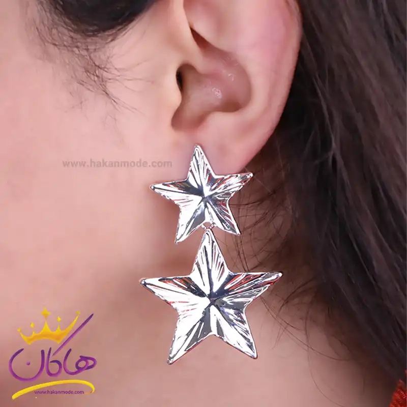 گوشواره زنانه استیل آویز دو ستاره sp 11261