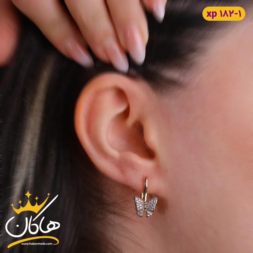 گوشواره کلیپسی پروانه نگین دار | xp182/1