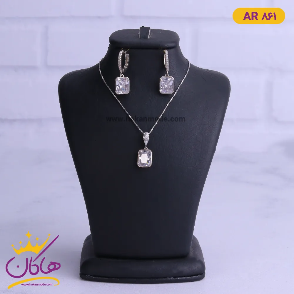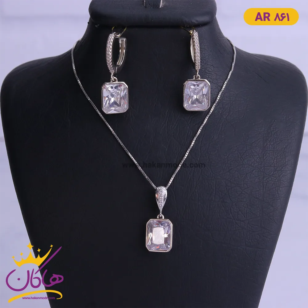 نیم ست نقره زنانه مدل تک نگین مستطیل | کد AS 861
