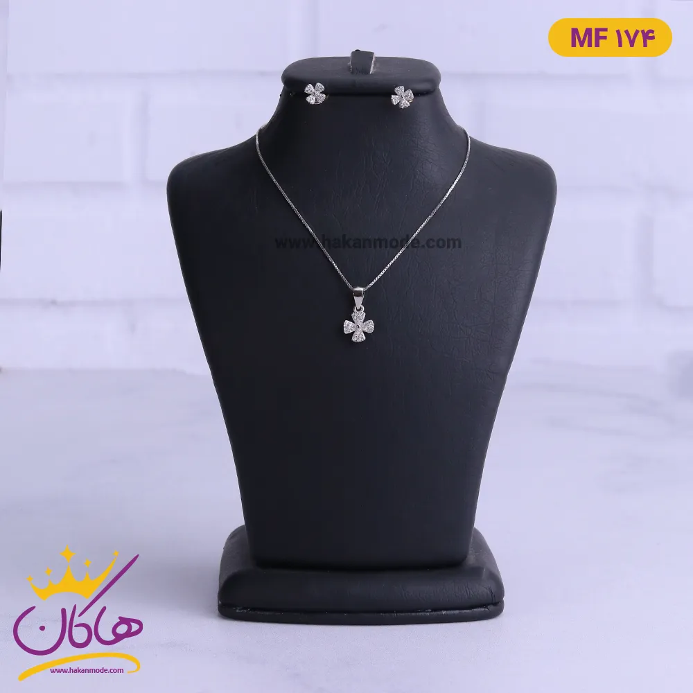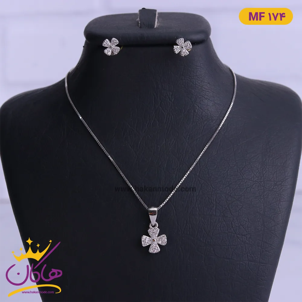 نیم ست نقره زنانه گل چهار پر نگین دار | کد MF 174