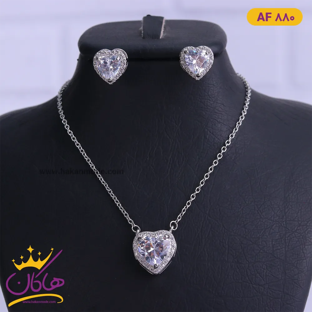 نیم ست نقره زنانه مدل تک نگین قلب | کد AF 880