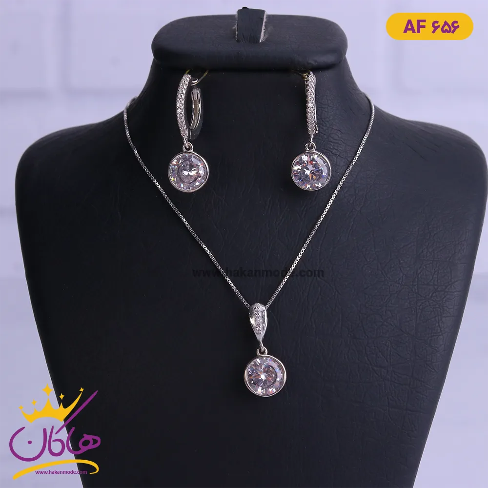 نیم ست نقره زنانه مدل تک نگین گرد | کد AF 656