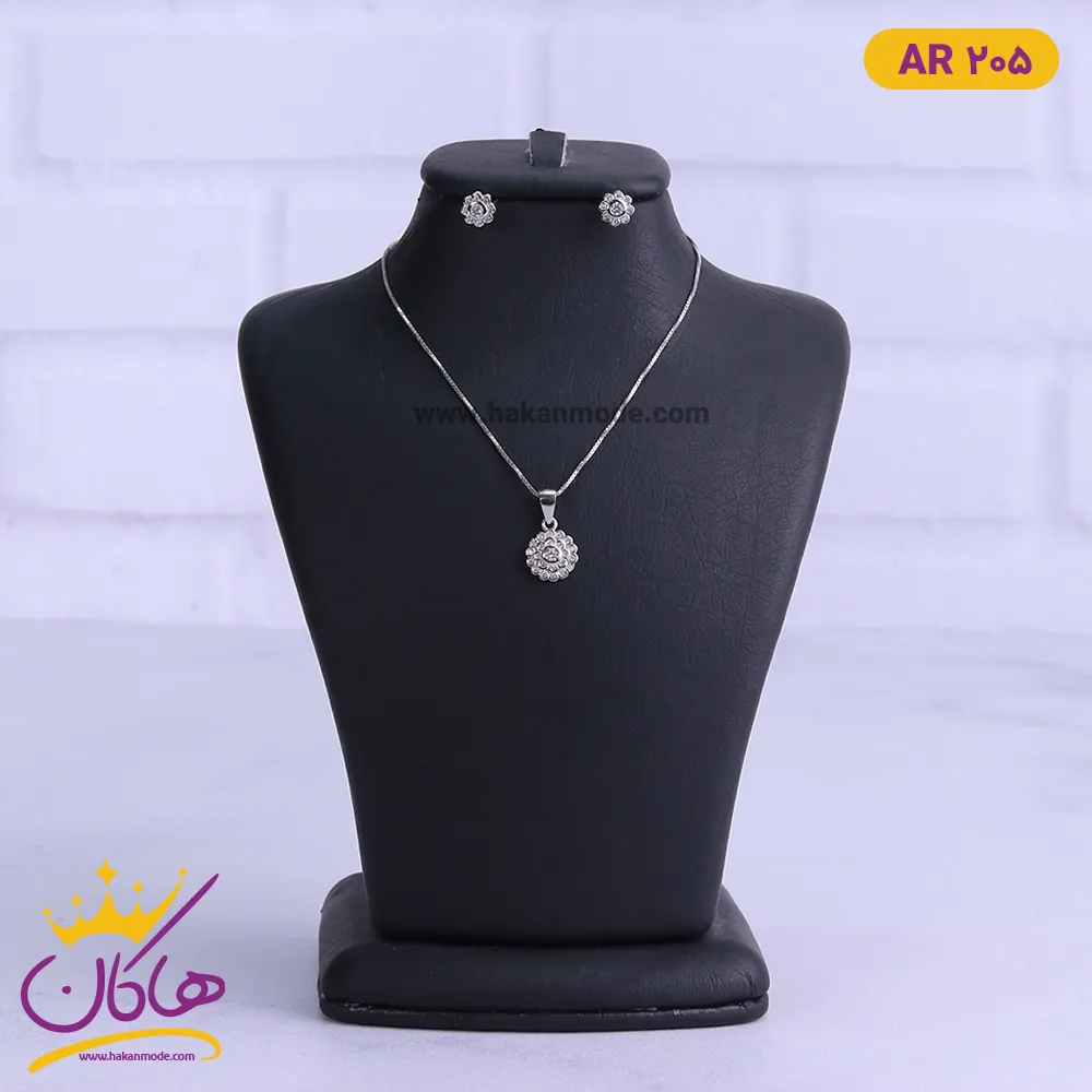 نیم ست نقره زنانه طرح گل تمام نگین | کد AR 205