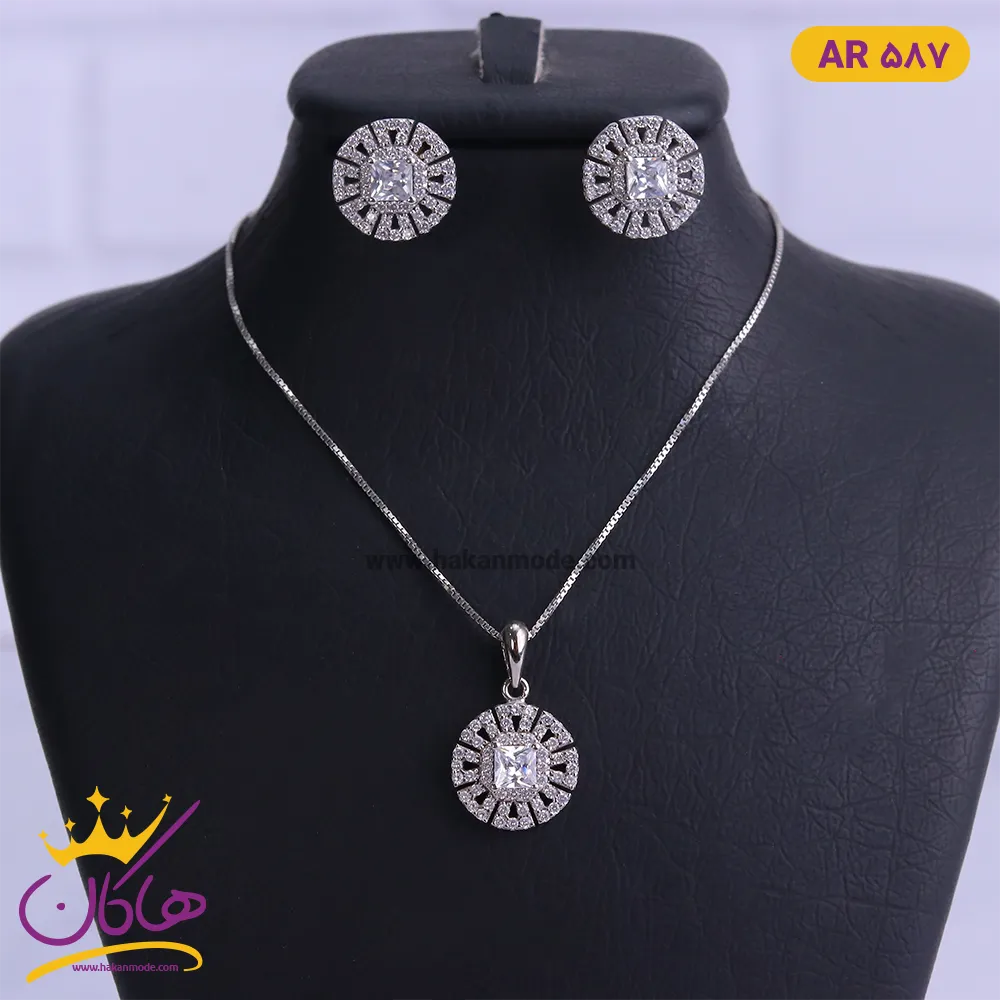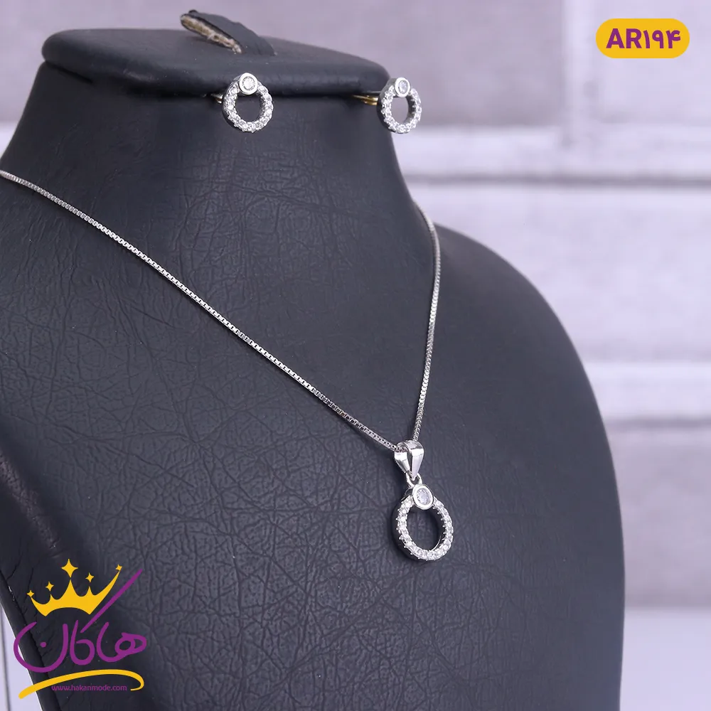 نیم ست نقره زنانه مدل دایره تمام نگین | کد AR 587