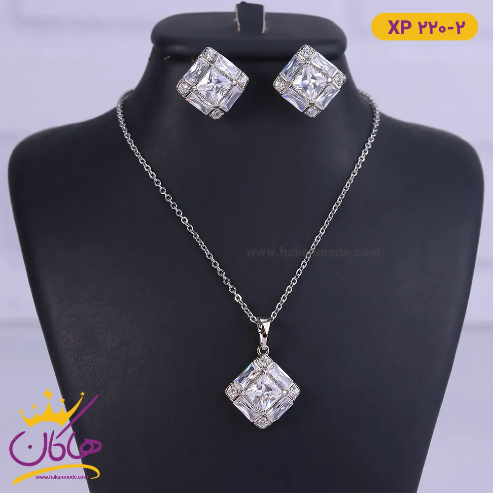 نیم ست استیل زنانه لوزی نگین باگتی | کد xp220/2