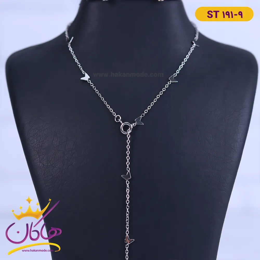 خرید گردنبند استیل زنانه طرح پروانه st191/9 با بهترین قیمت گردنبند استیل زنانه آویز بلند طرح پروانه طرحی ساده و