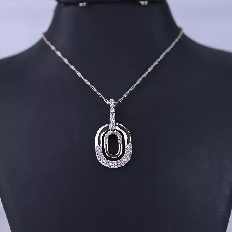 خرید گردنبند استیل زنانه شیک با آویز بیضی نگین دار با بهترین قیمت گردنبند زنانه استیل آویز بیضی نگین دار،