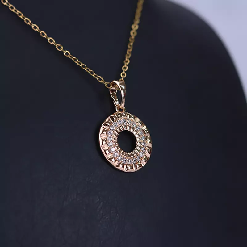 خرید گردنبند استیل زنانه طلایی با آویز دایره ای نگین دار با بهترین قیمت گردنبند استیل زنانه طلایی با آویز