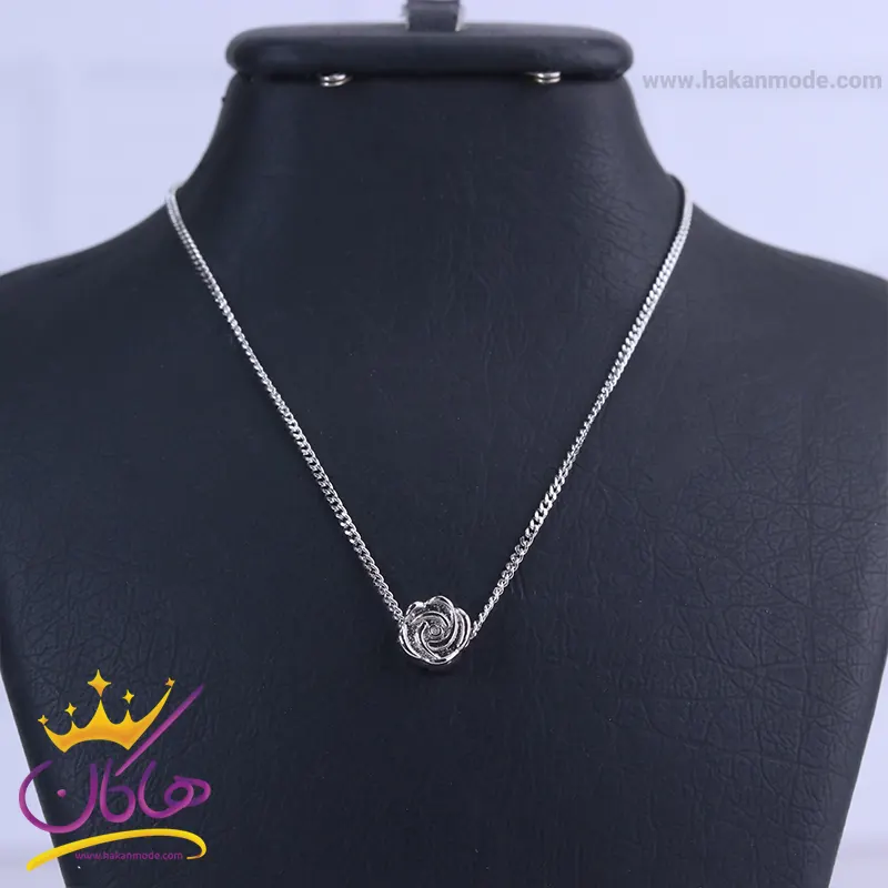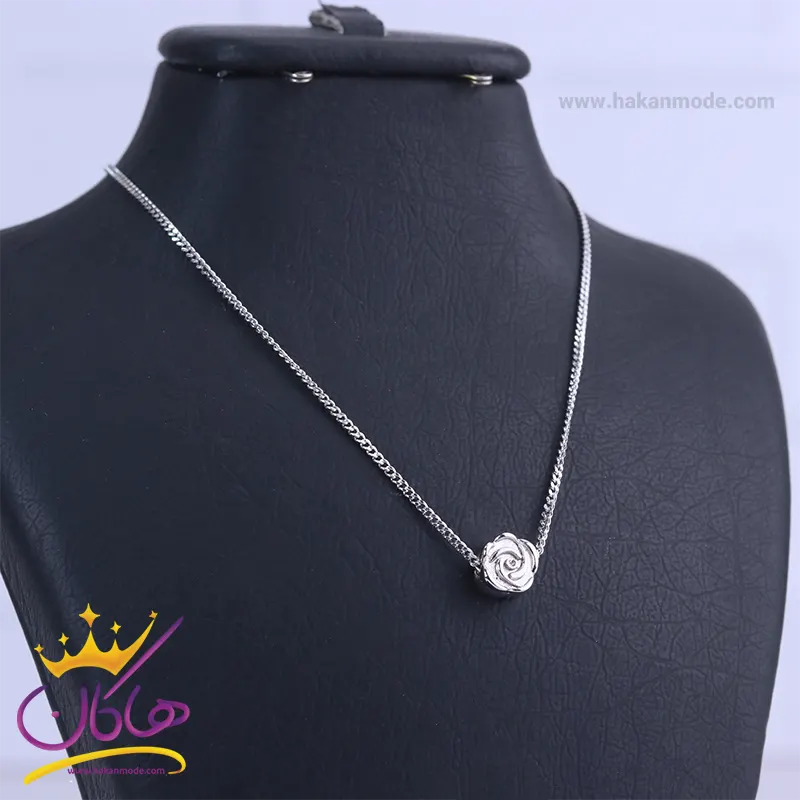 خرید گردنبند استیل زنانه نقره ای با پلاک گل رز با بهترین قیمت گردنبند استیل زنانه نقره ای با پلاک