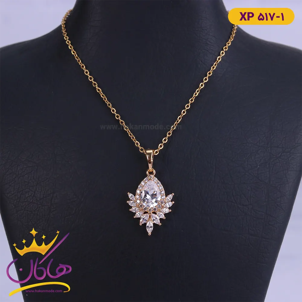 گردنبند استیل زنانه اویز اشک نگین دار طلایی | کد XP 517/1