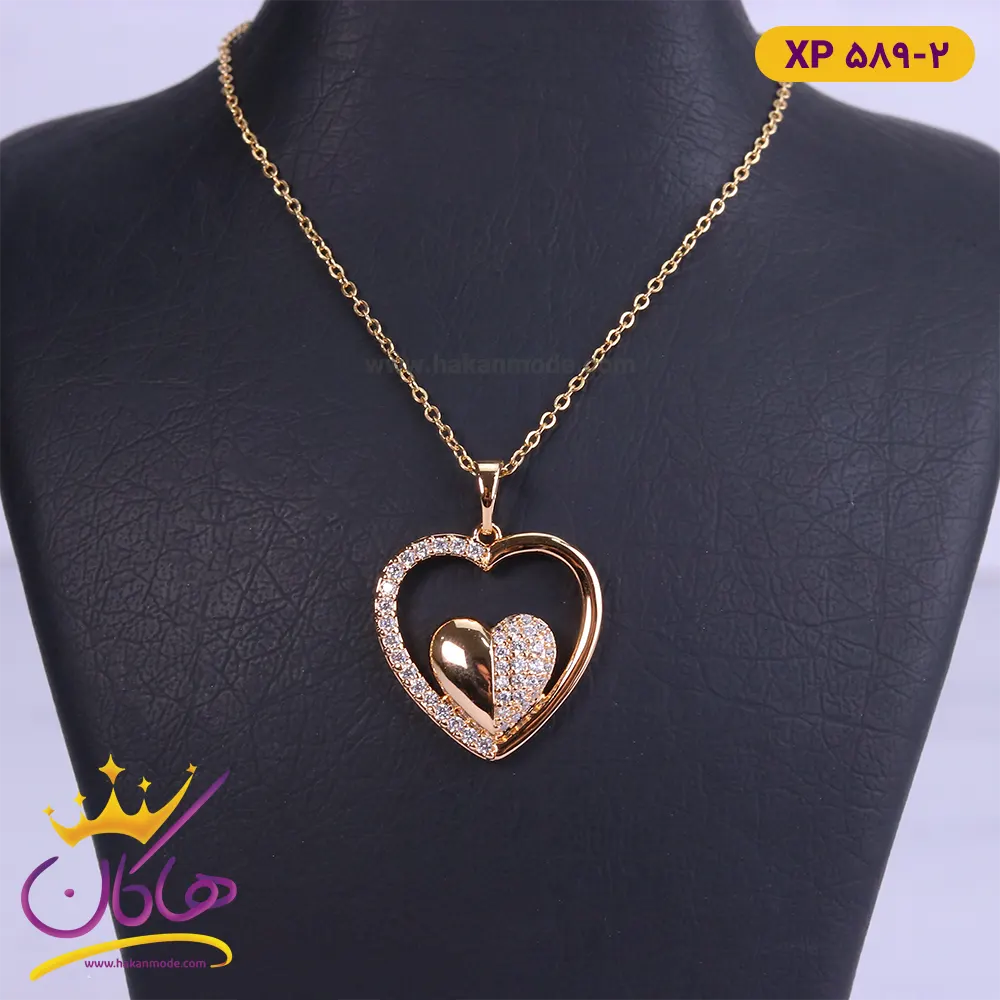 گردنبند استیل زنانه اویز قلب طلایی | کد XP 589/2