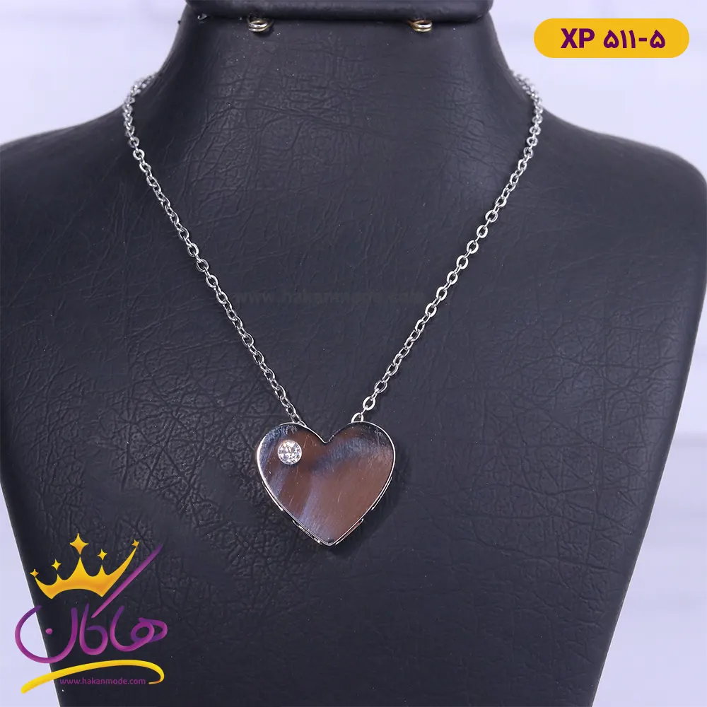گردنبند استیل زنانه اویز قلب ساده تک نگین | کد XP 511/5