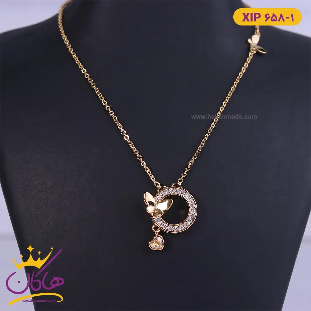 گردنبند استیل زنانه اویز پروانه نگین دار | کد XP 504/2