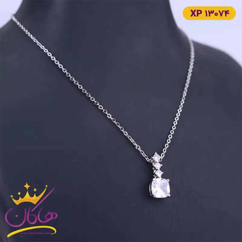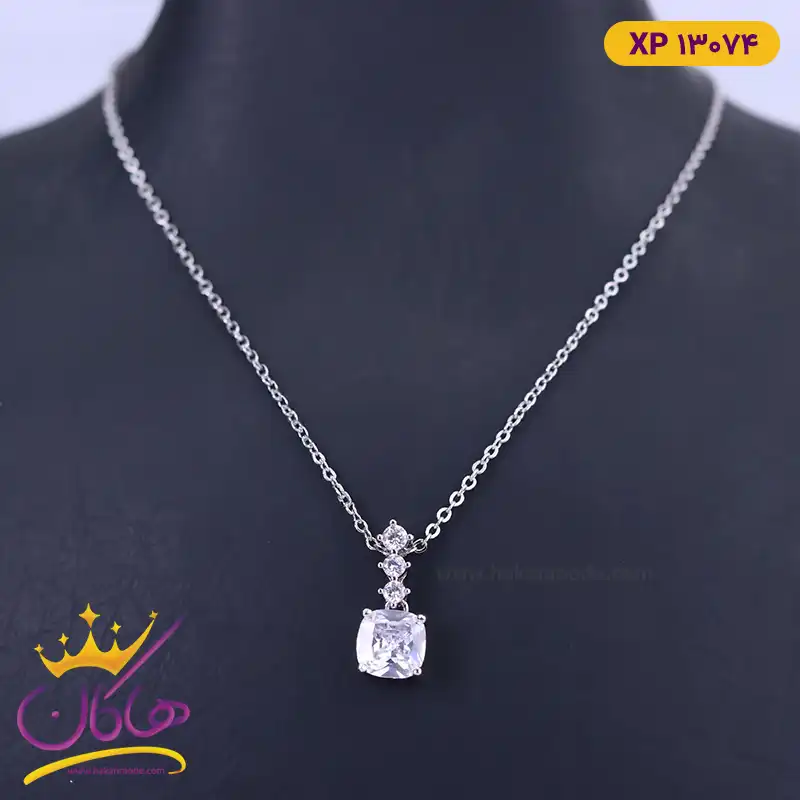 گردنبند استیل زنانه آویز نگین نقره ای | xp 13074