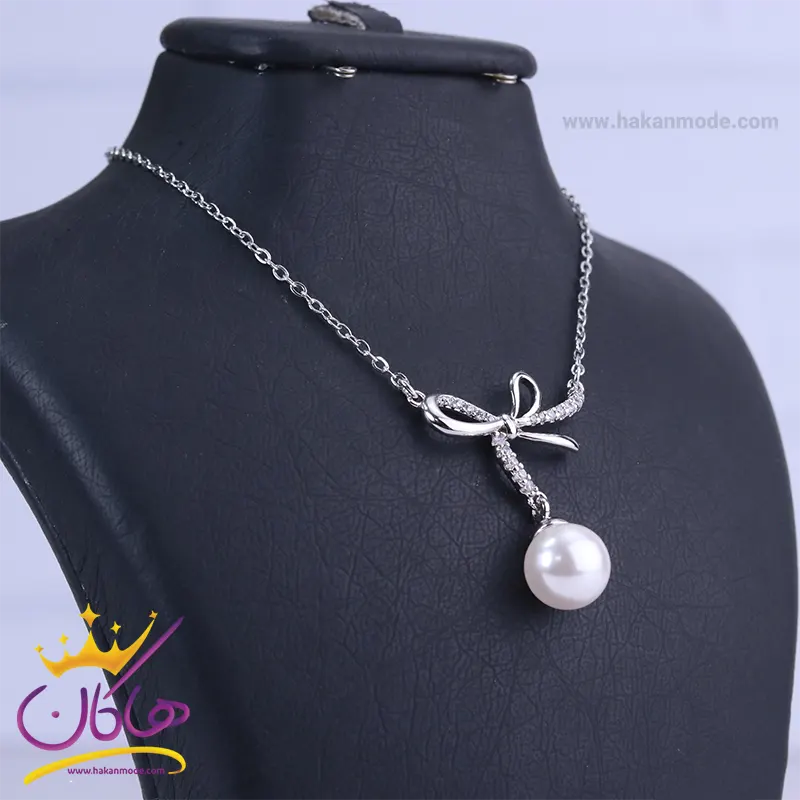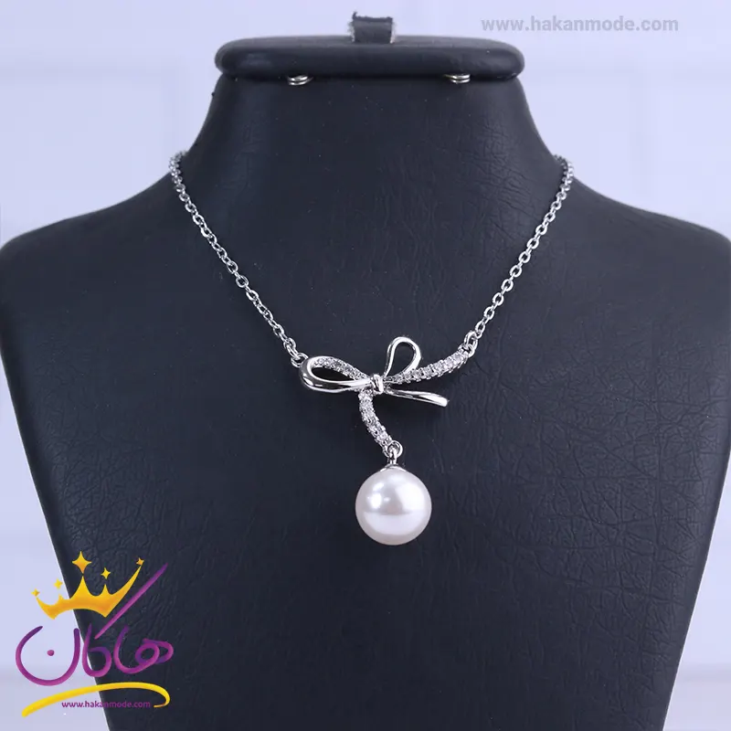 خرید گردنبند استیل زنانه پاپیون و مروارید نقرهای با بهترین قیمت گردنبند استیل زنانه پاپیون و مروارید نقرهای، طرحی خاص